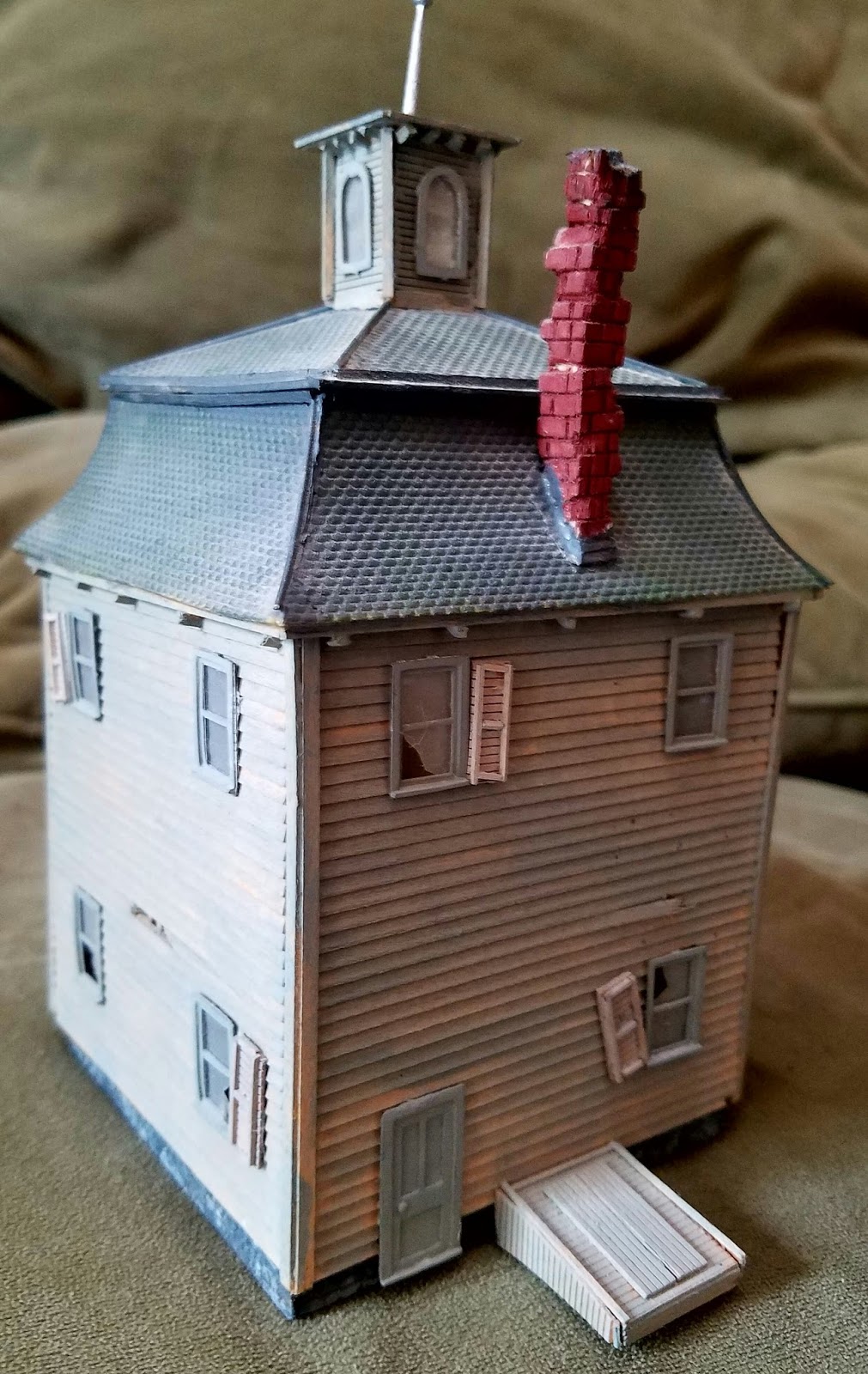 | This is the Lifelike Haunted House....plus some. I thought the original kit was too simple and a little boring, so I "kit bashed" two kits together to make an "L" shaped mansion. |